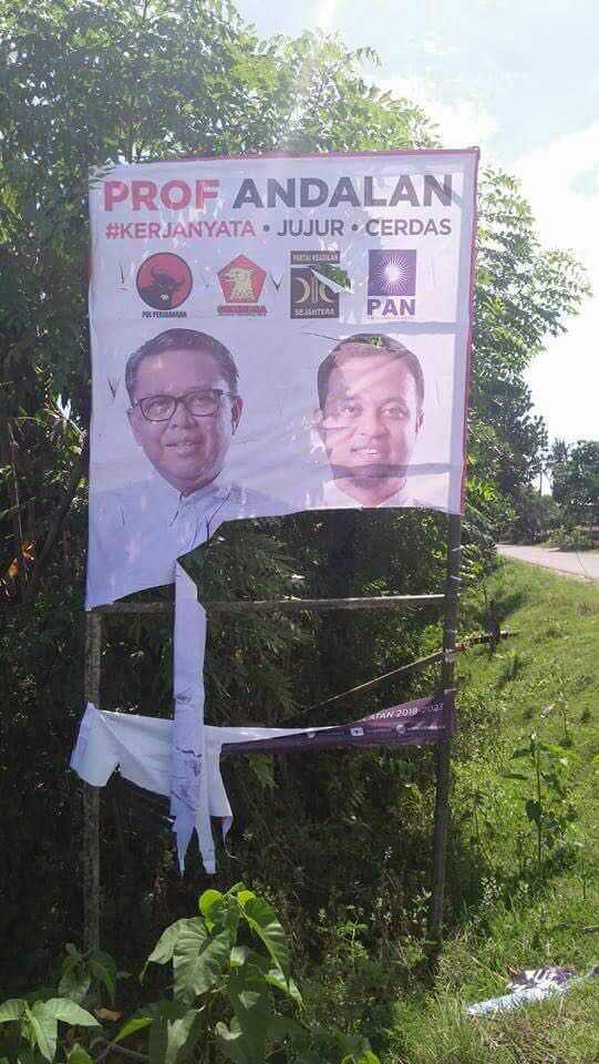 Salah satu bukti tidak sportifnya pertarungan itu ditunjukkan dengan adanya pengrusakan baliho salah satu kandidat bakal calon gubernur.